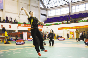 2月7日,“全民健身,幸福中原”2017年河南省新春羽毛球大赛在项城开赛。本次比赛由河南省体育局、河南省文明办、河南省农业厅主办,比赛项目有男女单打、男双、女双和混合双打,赛程为期4天,来自全省各个县市的22支代表队242名运动员参加了角逐。图为比赛现场一角。
