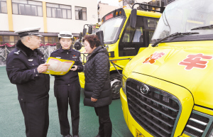 校车安全 常抓不懈 2月8日,上海徐汇公安分局交警支队民警徐彦珅(中)、管仁忠(左)在对逸夫小学的校车行车路线进行检查。新学期开学在即,当日起,上海徐汇公安分局交警支队对全区中小学、幼儿园近300辆校车的车况、车载救生设备、驾驶员资格、行车路线等逐一检查审核,消除校车隐患,确保学生平安出行。新华社发