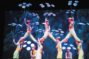 “亲情中华”艺术团献艺维也纳 2月7日,在奥地利首都维也纳举行的“亲情中华”晚会上,中国杂技团演员表演《喧歌嬉调——转碟》。当晚,中国侨联“亲情中华”艺术团为400多名维也纳华侨华人及当地民众献上一台包含歌舞、杂技、器乐等节目的晚会,为观众带来新春的欢乐。