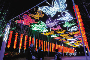 河北燕郊上演浪漫元宵灯会 2月7日,游客在元宵灯会上观赏花灯。当日,为期6天的浪漫元宵灯会在河北燕郊“梦东方·未来世界航天主题乐园”拉开帷幕。数百万个LED灯珠、30余组艺术灯组营造出流光溢彩的梦幻光影艺术世界,吸引众多游人前往观赏。