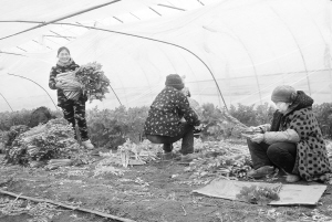 昨日,沈丘县周营乡李寨村一处有机蔬菜种植基地内,种植户正在忙碌着收获“订单”芹菜。近年来,该乡将设施蔬菜产业作为农民增收致富的主导产业来抓,亩均可实现收入2万余元。 谢辛凌 摄