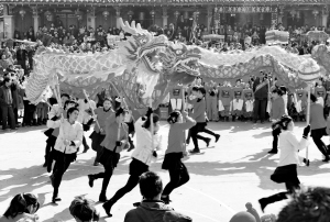 2月12日,村民在莆田市城厢区东海镇东沙村进行舞龙表演。当日,福建省莆田市城厢区东海镇举行民俗展演活动,千余名当地村民自发组织在一起展示传统民俗文化。据了解,元宵节期间,莆田市民俗文化活动异彩纷呈,民俗展演活动一直要持续到农历二月初二。