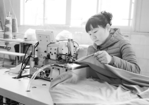 2月15日,扶沟县汴岗镇一名妇女在县产业集聚区一制衣企业车间认真工作。近年来,该县出台一系列措施和优惠政策,提供劳动就业岗位1000多个,鼓励外出务工人员反哺家乡,返乡创业。纪俊辉 摄