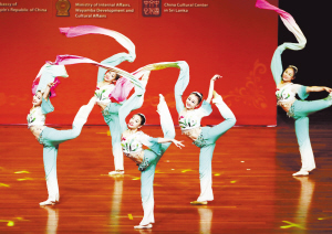 “欢乐春节·精彩江苏”斯里兰卡演出引轰动 2月14日,在斯里兰卡南部的汉班托塔港,江苏艺术团的演员表演舞蹈《且吟春雨》。由中国江苏艺术团带来的“欢乐春节·精彩江苏”文艺演出14日晚走进斯里兰卡南部汉班托塔港,为当地民众奉献了一台独具中华文化特色的艺术盛宴。新华社发