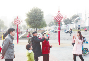 2月12日,驸马沟公园内孩子们在尽情地玩耍。连日来,随着气温回升,户外游玩的市民逐渐多了起来,许多小朋友在家长的陪护下乐享春日暖阳。王洁石 摄