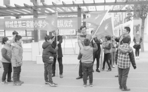 2月20日,郸城县第三实验小学举行了少先队大队委成立暨授旗仪式。仪式上,该校领导为大队委成员及辅导员颁发了聘书,新任少先大队辅导员刘芳芳宣读了新一届少先队大队委、中队委成员名单,并同校领导一起为大队委成员佩戴标志,授旗。