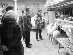 昨日,郸城县纪委负责人带头深入李楼乡李小楼村,入户走访,了解困难群众脱贫情况,为贫困户解难题、办实事,送去风雪中的温暖。图为在贫困户家了解养殖脱贫情况。记者 卢好亮 通讯员 程先锋 师靖 摄