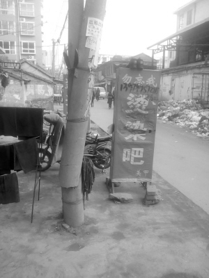 项城市任营路祥和家园小区门口的线杆折断,被人用铁丝缠绕。吴继峰 摄