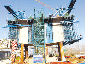 正在建设中的跨商周高速悬臂连续梁工程。记者 李一 摄
