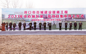 开工仪式设在周口至商水连接八一路打通工程的施工现场。上午9点30分,市委书记刘继标宣布:周口市中心城区百城建设提质工程2017年第一批项目开工!