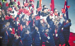 第八届亚洲冬季运动会2月26日,在日本札幌落下帷幕,中国队以12金14银9铜的成绩位列奖牌榜第三,东道主日本和韩国分列奖牌榜前两位。图为中国代表团部分成员在闭幕式上。