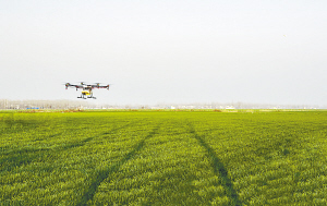 昨日上午,项城市孙店镇一块麦田上空,一架无人机正在技术人员的操作下为小麦喷洒农药。连日来,温度回暖,万物复苏,项城市利用有利天气,组织农技人员深入田间地头开展农业科技培训,发动农户抓好作物田间管理,确保今年夏粮丰收。