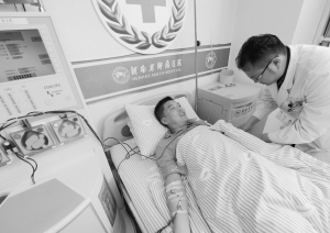 河南非血缘关系造血干细胞捐献达600例 2月27日,来自河南焦作的志愿者曹红卫在河南省肿瘤医院为一名患白血病的10岁男孩捐献造血干细胞,成为河南省非血缘关系造血干细胞捐献第600例,河南也是首个捐献达到600例的省份,累计捐献人数连续5年位居全国省级分库首位。新华社发