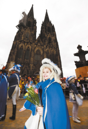 一年一度的科隆狂欢节27日迎来高潮。当天,蔓延数公里的“玫瑰星期一”大游行队伍穿过科隆老城区。近百万民众身着各类奇装异服,簇拥在游行路线两侧,欢呼着接取从彩车上撒下的糖果、巧克力、鲜花等礼品。从1823年狂欢节组委会成立算起,科隆狂欢节已有近200年历史,是德国规模最大的狂欢节。