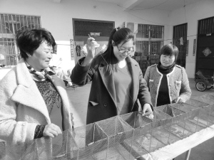 昨日,商水县舒庄乡乔庄村返乡大学生于珍珠(中)正在向留守妇女传授穿渔网技术。近两年来,于珍珠带领当地500多名留守妇女编织渔网致富。乔连军 摄