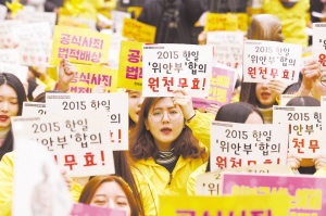 3月1日,韩国民众在首尔的日本大使馆前参加集会,纪念“三一运动”。韩国民众在集会上高举标语,要求废除《韩日慰安妇协议》。1919年3月1日,朝鲜半岛爆发反抗日本殖民统治的“三一运动”。1949年,韩国政府将3月1日定为国家法定纪念日。