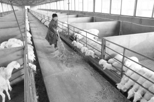 2月20日,项城市永丰镇金博源畜牧精准扶贫就业基地的工人们正在给湖羊添加精饲料。近年来,该市把发展畜牧养殖作为带动贫困农户增收致富的重要途径,采取“公司+农户”“合作社+农户”等模式,以创业带就业,通过培育特色优势养殖产业带动贫困农户走上精准脱贫之路。王洁石 摄