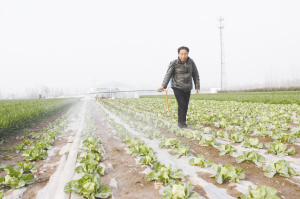 2月27日,南顿镇刘店村村民刘耀福正在给卷心菜喷洒营养剂。近年来,该镇积极引导当地贫困户种植卷心菜、西葫芦等,使农民走上了脱贫致富的道路。