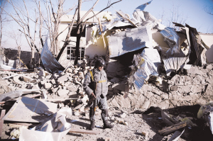 阿富汗首都连环爆炸导致16人死亡、59人受伤 3月2日,在阿富汗首都喀布尔,一名警察在爆炸袭击现场工作。阿富汗首都喀布尔市区1日连续遭遇两起爆炸袭击。阿公共卫生部证实,两起爆炸目前已造成包括妇女、儿童在内的至少16人死亡、59人受伤。新华社发