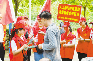 总有一种感动,让我们无法忘怀;总有一些细节,让我们久久回味。在我们身边,活跃着一群群志愿者——他们在主次街道打扫卫生、清理垃圾小广告,进社区宣传科普知识,组织文艺演出;在敬老院、福利院为老人孩子洗头理发、整理内务;在车站为南来北往的旅客提供服务……成为我市创建省级文明城市活动中的一道道靓丽风景。