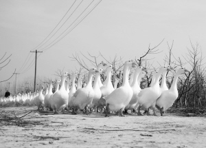 昨日,贫困户闫明武正走在放养鹅的路上。据悉,在扶沟县金果农业有限公司的产业扶贫支持下,闫明武养殖鹅2000多只,年收入3万多元,走上了脱困致富之路。