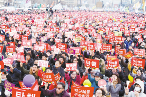 韩国首尔相继上演“倒朴”“挺朴”集会 3月4日,在韩国首尔市中心,支持弹劾朴槿惠的“反朴”民众参加集会。当日,支持和反对弹劾总统朴槿惠的韩国民众在首尔各自举行大规模集会。新华社发