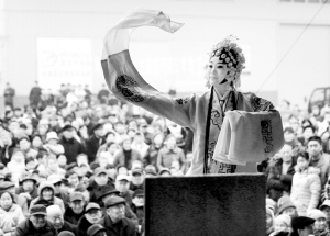 近日,扶沟县产业集聚区群众正在观看戏曲选段《五世请缨》。据悉,为活跃群众文化生活,传承敬老传统风尚,扶沟县产业集聚区采取送戏入村、举办文化比赛、孝子媳妇评选等活动,取得了良好的社会效果。黄金峰 摄