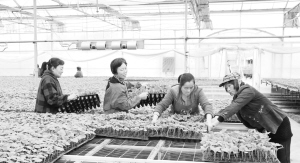 扶沟县豫星农业发展有限公司扶贫基地不但吸纳贫困户就业,而且还为贫困户购苗提供优惠,贫困户还可免费学习种植技术,为脱贫攻坚提供物质、智力保障。图为昨日部分贫困人员在智能化育苗大棚内管理蔬菜种苗。