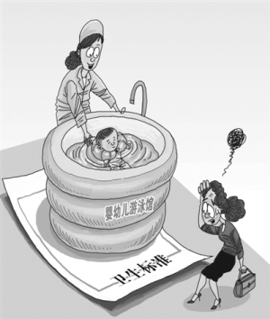 近年来,婴幼儿游泳逐渐成为宝宝成长过程中的“常规项目”。记者走访发现,尽管多数游泳馆采取的是一人一水一膜的方式,但泳池里的水质是否安全,婴幼儿用品、场馆是否消毒,仍存在较大不确定性。目前我国并未出台相关管理条例,也没有制订开办婴幼儿游泳馆的相关准入标准,卫生标准、消毒设施、水质要求及工作人员资质等仍是空白。这正是:
