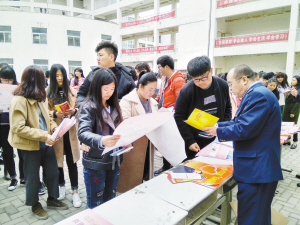为增强学生抵制传销、防范传销的能力,避免上当受骗,“3·15”来临之际,市工商局组织工作人员到周口职业技术学院开展“打击传销进校园”活动。图为工商人员正在向学生讲解传销的社会危害。