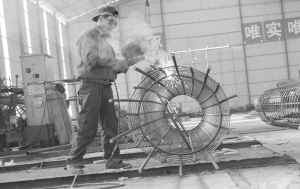 郑合高铁扶沟段建设在有关部门的支持下,施工进度快、质量好,按照施工计划节点积极推进。图为中铁航空港公司施工人员正在进行钢筋笼焊接。 记者 王泉林 摄
