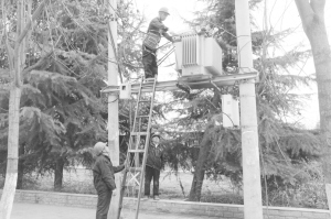 为保障公共场所用电安全,太康县供电公司组织各供电所对公共场所安全用电情况进行排查,全力消除各类安全隐患。图为3月16日城区供电二所工作人员对公用配变检修消缺。邱志强 摄