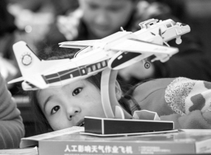 重庆举办气象纸模科普拼装大赛 3月18日,一名参赛的小女孩在检查拼装完的“人工影响天气作业飞机”纸质模型。当日,重庆市气象局举办第二届气象纸模科普拼装大赛,通过网络征集的近20对孩子和家长参加了当天的比赛活动和科普讲座。新华社记者 刘潺 摄