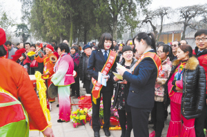 县国税局在朝祖会上通过设立税法宣传台,悬挂宣传横幅,大力宣传税法知识,受到社会各界人士的一致好评。(简强 李要金 摄)