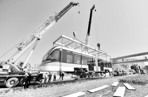 深圳首条有轨电车将于3月底试跑 3月24日,在位于深圳龙华区的横坑车辆段,工作人员对编号为LH1021-1024的有轨电车进行整车吊装。深圳首条有轨电车——龙华现代有轨电车将于3月底开始试跑。新华社发