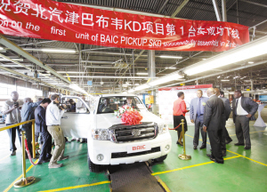 由北汽津巴布韦有限公司组装的首辆汽车3月27日成功下线,标志着“中国制造”在南部非洲汽车市场的开拓中取得新突破。据悉,北汽津巴布韦有限公司由北京汽车集团有限公司与两家津巴布韦汽车厂商合资而成。根据合作协议,该公司将为当地创造约5000个就业岗位,并在2017年生产1000辆汽车,为津带来约130万美元税收。