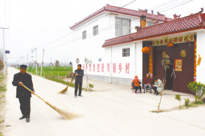 3月17日,三店镇马庄村村民正在打扫村内道路卫生。自项城市开展环境综合整治活动以来,各镇办全面开展市场秩序、道路交通、绿化亮化、空中线路等环境综合整治活动。李光辉 摄