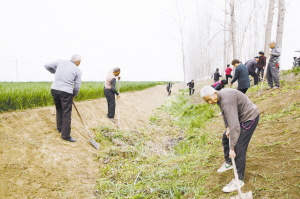 3月24日,高寺镇桥北头行政村村民正在整修沟渠。高寺镇以“清洁家园、美丽乡村建设”为载体,截至目前,该镇拆除违章建筑26处,清理河塘沟渠及道路两旁各类垃圾近2100立方,新栽树木2万株。张永久 摄