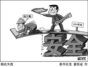 广州“3·25”作业平台坍塌事故,造成九死两伤。初步调查,是由于40米高的作业平台失稳造成坍塌。据记者调查,事故背后也暴露出一些地方职能部门急于项目投产,要求建设单位抢工期、赶进度,一定程度上造成施工方过分求快疏忽安全生产。