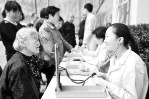 河北:爱心义诊进社区 4月6日,邢台市经济开发区第一医院医务志愿者为南市屯社区居民测量血压。当日,河北省邢台市经济开发区第一医院组织医务志愿者走进南市屯社区开展义诊活动,为社区居民免费检查身体,宣传卫生健康知识。 新华社发