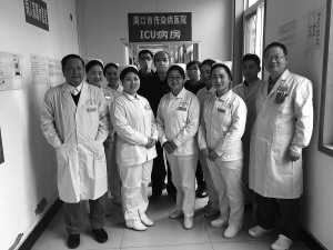 救治队伍以市传染病医院ICU人员为核心力量,检验科、CT室、后勤等科室全力配合。市传染病医院的医护人员分为三组轮流值班,每组工作8小时,副院长侯保民、科室主任卫芳征更是24小时在岗……市卫计委副主任刘双国、市中心医院副院长吕燕平等救治专家小组成员也数次进入医院察看病情、进行会诊。