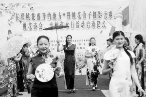 4月1日,一场富有乡土气息的桃花节,在商水县现代农业示范园区内开幕,吸引大批游客前来踏春赏花。本届桃花节最大亮点是将“田园城市”和“桃花生活”相结合,开展了摄影采风、诗歌朗诵、旗袍走秀、古琴演奏等系列活动。据了解,近年来,该县林果业发展迅速,仅园区内的硕博果业有限公司的桃园面积就有300余亩。 ①开幕式上的旗袍走秀现场。 ②身着旗袍的游客在桃园内观赏桃花。 ③小朋友在开幕式上进行古琴演奏。 刘飞 魏红 摄