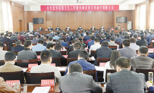 本报讯 (记者 王艳 刘彦章) 4月7日上午,全市宣传思想文化工作暨创建省级文明城市表彰大会召开。会议贯彻落实全国、全省宣传部长会议精神,认真总结2016年全市宣传思想文化工作,隆重表彰创建省级文明城市工作先进集体和先进个人,安排部署今年的工作任务。市委书记刘继标出席会议并作重要讲话。