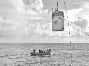 “海斗”自主遥控水下机器人在西太平洋进行下潜实验(2016年7月18日摄)。