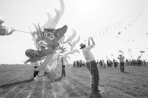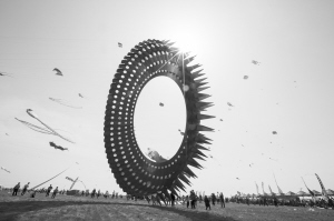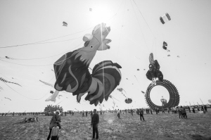 来自中国、美国、澳大利亚和新西兰等约40个国家和地区的122支风筝代表队15日齐聚山东潍坊,参加第34届潍坊国际风筝会。 15日上午,位于潍坊滨海开发区的风筝放飞场晴空万里,海风拂面。在简短的开幕式后,这个占地700多亩、今年首次使用的放飞场成了风筝的海洋,中外各地充满创意的风筝交相辉映。既有传统的风筝如巨大的龙形风筝、心形风筝、鲸鱼风