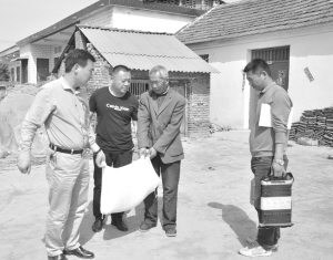 4月20日,扶沟县练寺镇有关领导深入晋桥村贫困户支根成家中慰问,给他送上面粉、食用油等慰问品,并希望他克服困难,努力抓好生产,争取早日脱贫致富。 陈奎 摄