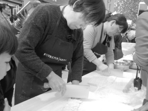 为丰富群众文化生活,近日,一场别开生面的擀面条大赛在周口经济开发区淮河路办事处南徐居委会举行,十多名擀面条高手现场比拼和面、擀面、切面技能,场面十分热闹。记者 窦娜 摄