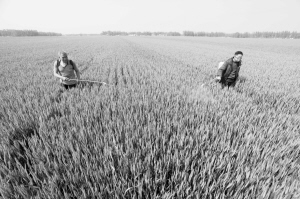 4月19日,商水县袁老乡老户庄群众在田间为小麦进行“一喷三防”。当前,正值小麦抽穗扬花关键期,更是麦蚜虫、吸浆虫等病虫害高发期,该县抢抓晴好天气,切实做好小麦“一喷三防”工作,确保今年小麦稳产增收。 刘飞 魏红 摄
