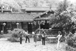 云南宁洱:特色乡村游助农民增收 4月22日,游客在宁洱同心镇那柯里村农家小院观赏拍照。云南省宁洱哈尼族彝族自治县同心镇那柯里村共有近300人,是一个以哈尼族、彝族、傣族为主体的少数民族村寨。那柯里村以历史和人文景观及民族风情吸引了中外游客,特色乡村游助村民经济收入增长。新华社发