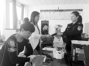 近日,项城市公安局办证服务大厅不断提升窗口服务质量,提高群众满意度。民警秉承亲民、便民、为民之心,耐心、细致地接待每一位群众,同时开展延时、预约服务,群众复印资料、照相全免费,不接待完最后一位群众不下班、不处理完当天的业务不下班。图为4月20日,民警正在为一名群众办理出国证件。